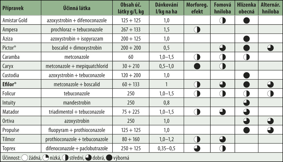 Každoročně německý Institut für Pflanzenschutz hodnotí fungicidy do řepky. Přípravek Efilor® je vždy hodnocen jako nejvyváženější a nejkvalitnější komplexní fungicid s výbornou účinností proti fómové hnilobě, hlízence obecné i alternáriové skvrnitosti. Přípravek také poskytuje potřebnou morforegulační účinnost vhodnou na jarní fázi vývoje řepky.