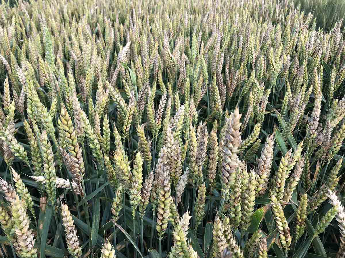 Obr. 1: Porost pšenice s velmi silným napadení fuzárii v klasech