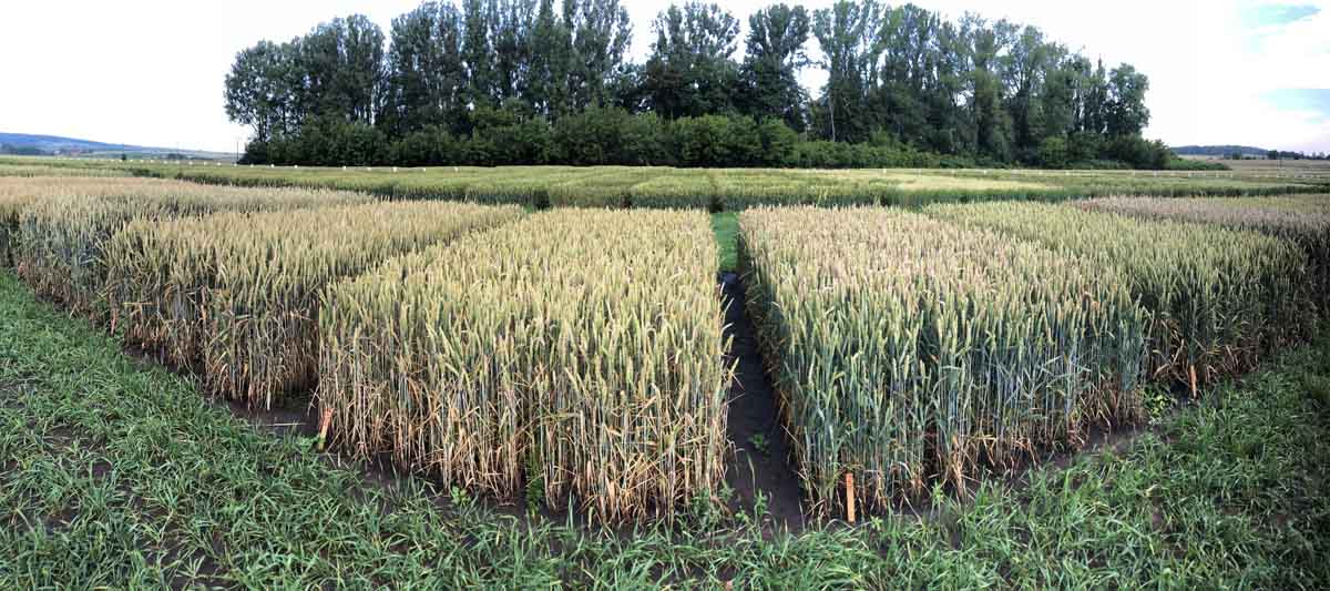 Obr. 5: Pohled na odrůdovou kolekci ozimé pšenice s rozdíly v napadení klasovými fuzárii