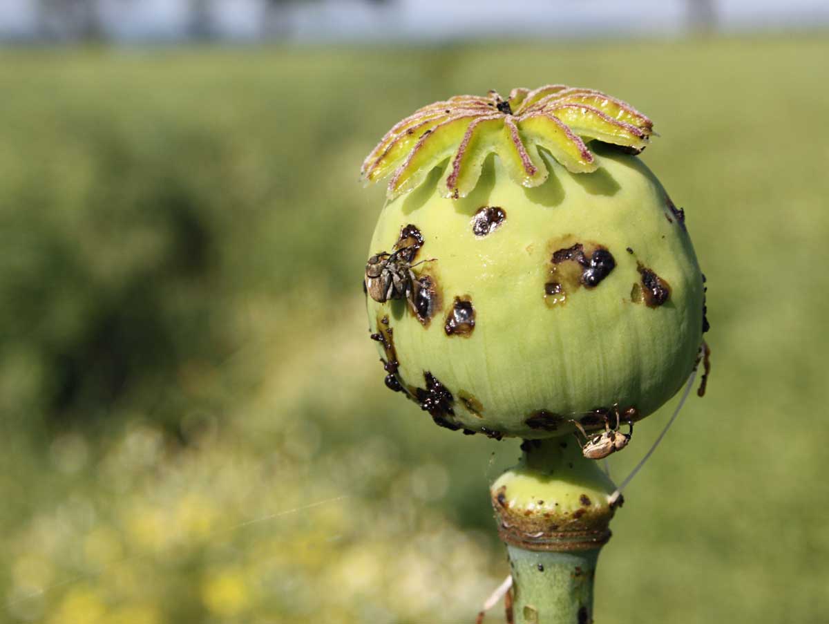Krytonosec makovicový a poškození tobolky v zelené zralosti