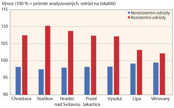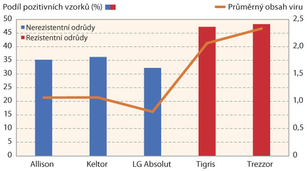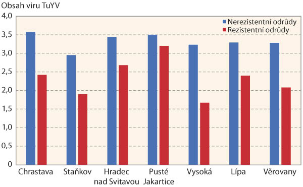 Současně je však třeba připomenout, že některé odrůdy bez deklarovaného genu rezistence, dosahovaly stejných nebo dokonce lepších výsledků než některé odrůdy s genem rezistence, přestože byla u nich zjištěna významně vyšší obsah virů. Ze získaných výsledků sice vyplývá, že v případě výskytu viru přináší pěstování rezistentních odrůd v průměru lepší výsledky, což ale nemusí platit pro všechny odrůdy v sortimentu. Stále totiž platí, že důležitá stále zůstává i přirozená úrodnost dané odrůdy.