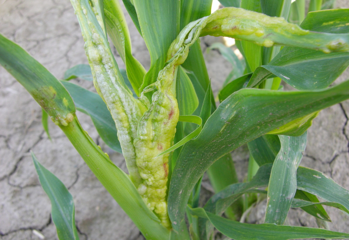 Obr. 1: Počáteční stadium obecné snětivosti kukuřice