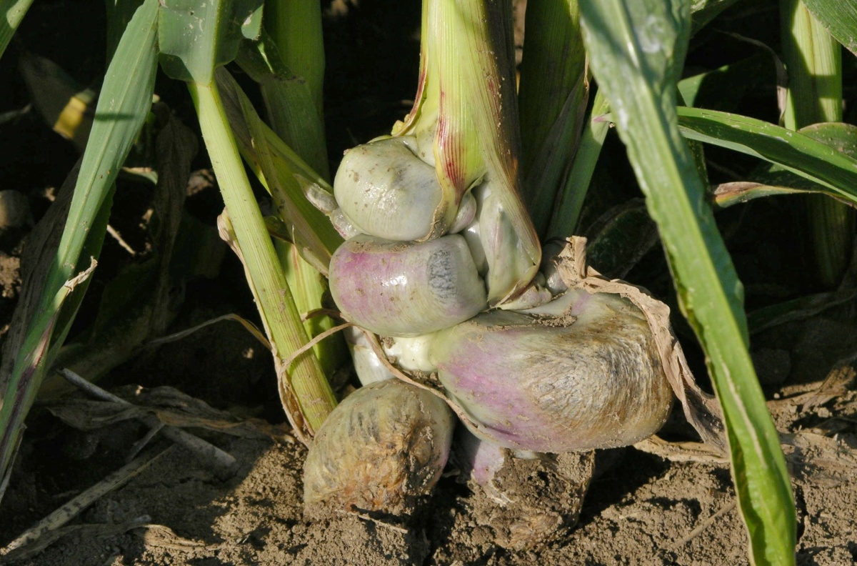 Obr. 2: Hálky patogena Ustilago maydis způsobující obecnou snětivost kukuřice