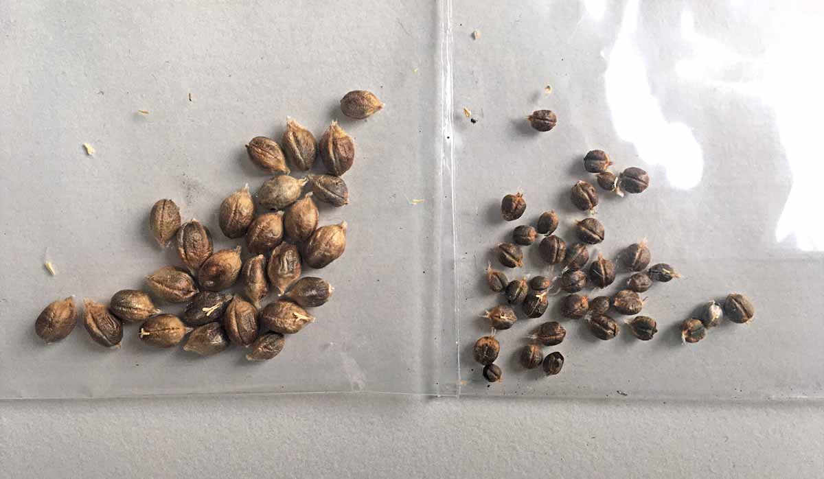 Hálky snětí mazlavých, vlevo Tilletia caries, vpravo Tilletia controversa (V. Dumalasová)