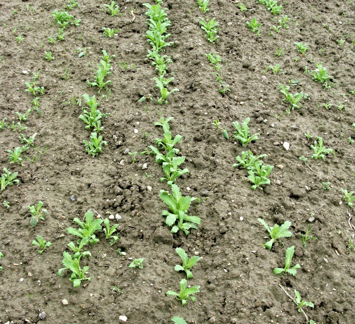 Prořídlý porost máku způsobený žírem krytonosce kořenového