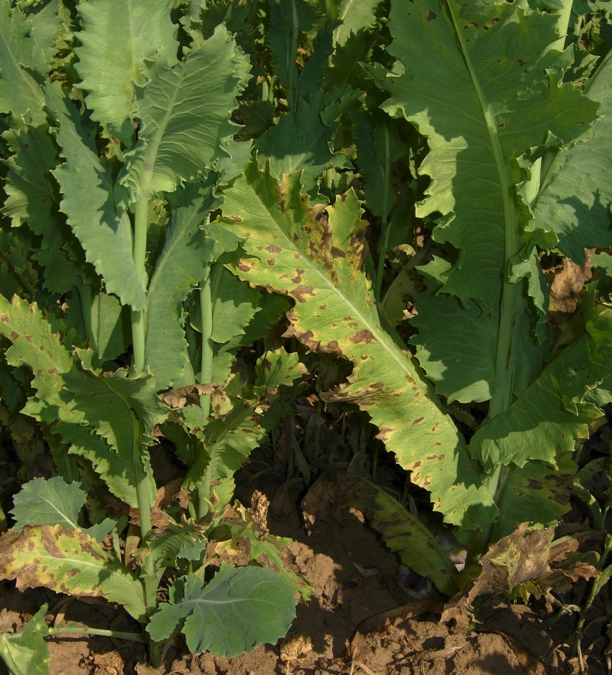 Helmintosporiová nekróza máku v pozdějsí fázi