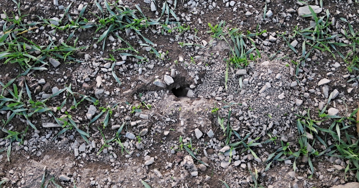 Aktivní nora hraboše polního v pšenici