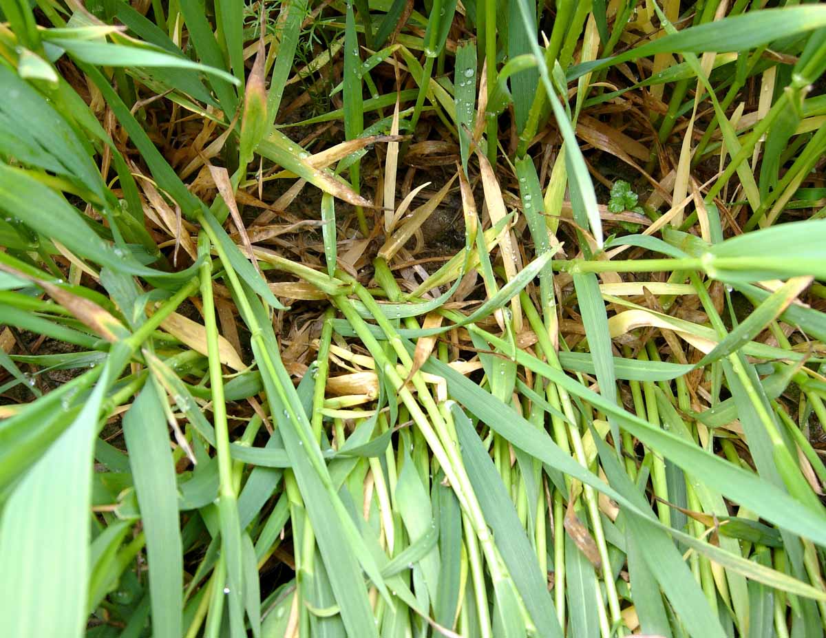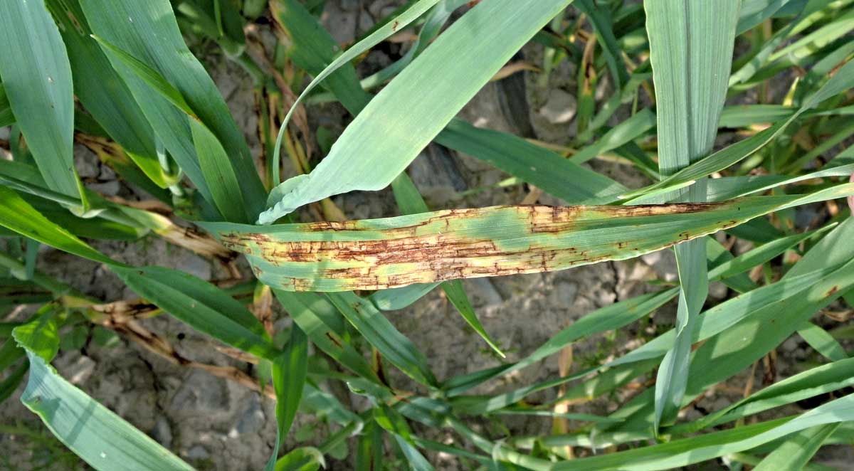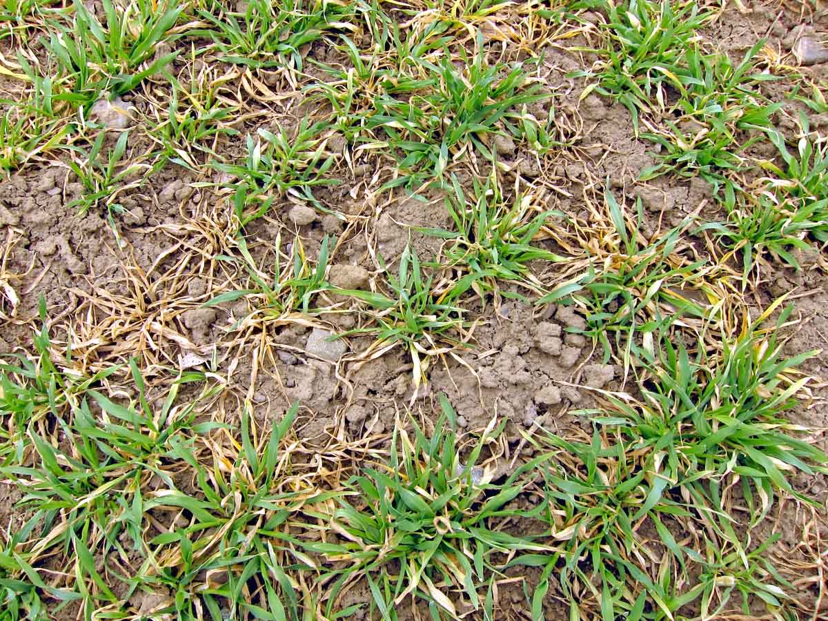 Výskyty chorob bází stébel, zejména na ozimé pšenici a ozimém ječmeni, zjišťujeme na konci odnožování, kdy se na listových pochvách objevují nespecifické nahnědlé skvrny. V převážné míře se může jednat o poškození způsobené sněžnou plísňovitostí obilnin (plísní sněžnou Monographella nivalis), houbami rodu Fusarium spp., Rhizoctonia sp., Cochliobolus sp. a místy i o stéblolam pšenice (Oculimacula yallundae). V této fázi nelze přesně vizuálně rozlišit jednotlivé druhy. Pro přesné určení patogenů je nutno provést laboratorní rozbor.