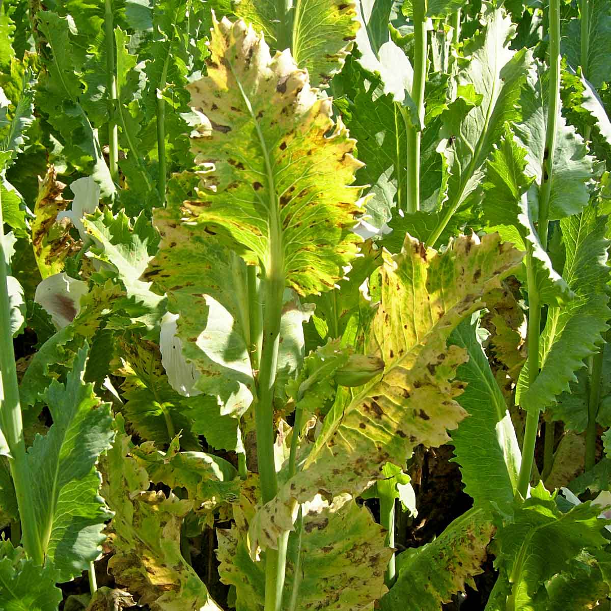 Pleosporová skvrnitost máku se často projeví až v květu