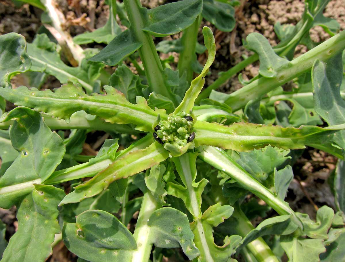Listová růžice pcháče v pšenici