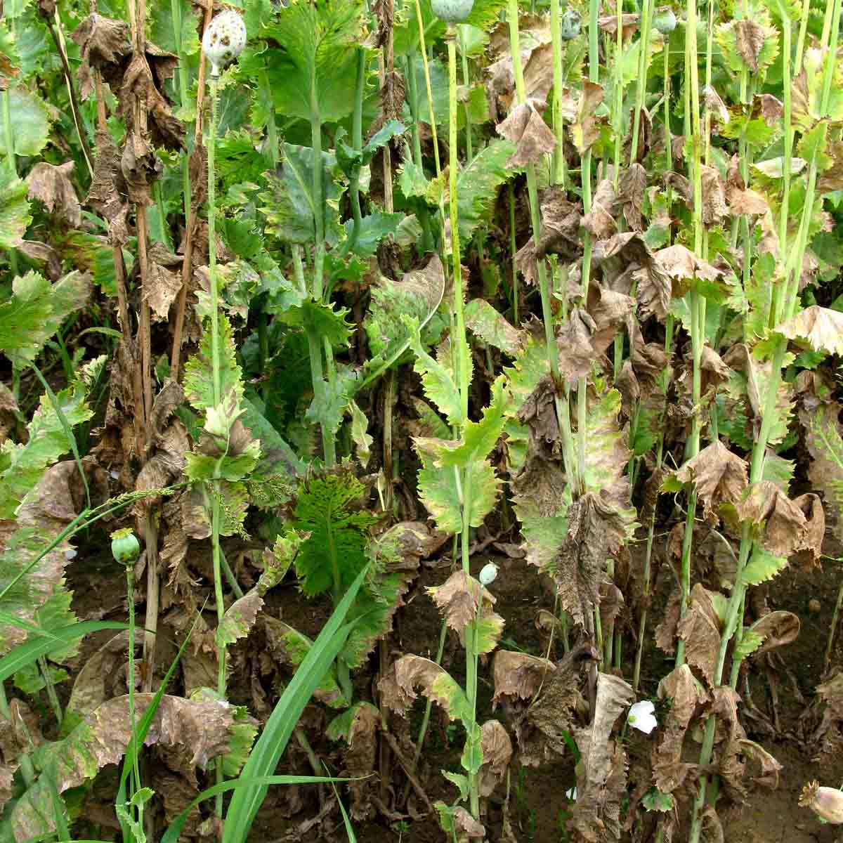 V oblastech, kde se s nárůstem osetých ploch rozšířila škodlivost houbových chorob, sledujte napadení porostů pleosporovou (helminthosporiovou) nekrózou máku (Pleospora papaveracea) a plísní máku (Peronospora arborescens). Obě choroby se mohou přenášet infikovaným osivem.