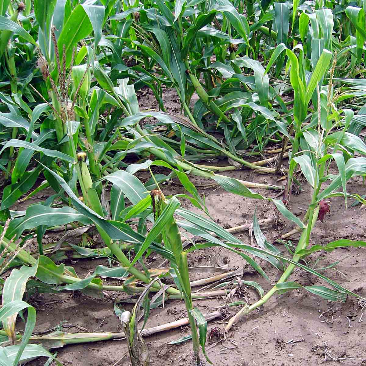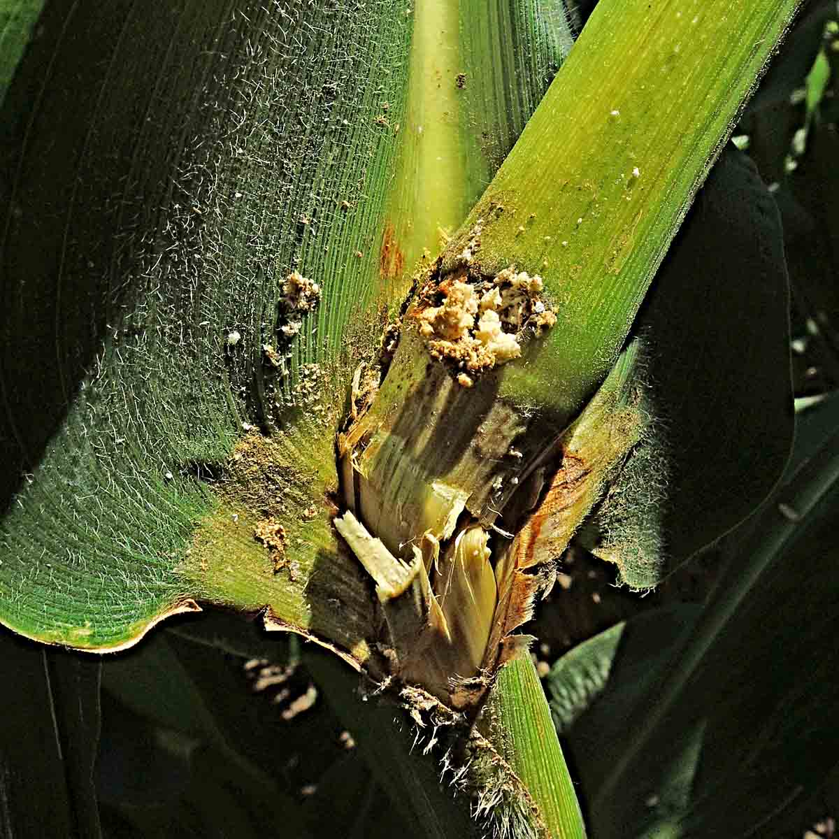 Housenka zavíječe kukuřičného způsobuje lámavost stébla