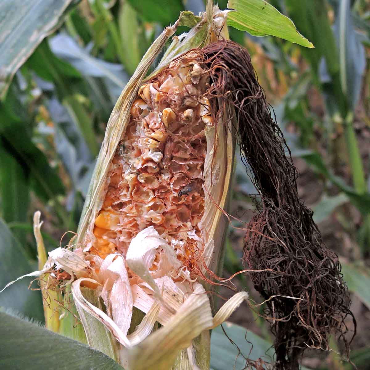 Larvy bázlivce kukuřičného mohou způsobit tzv. husí krky