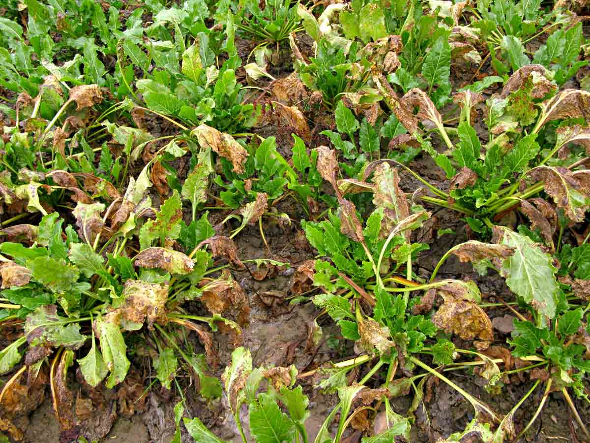 Pozor na cerkosporovou listovou skvrnitost řepy (skvrnatička řepná, Cercospora beticola), zvláště ve vlhčích, závětrných polohách, kde při silnějším napadení touto chorobou v rozhodující fázi nárůstu bulev a cukernatosti mohou zaschnout i celé listy a rostlina pak nouzově vytváří stále nové listy. Patogen se vyskytuje i na příbuzných merlíkovitých plevelech. Spory této choroby přežívají na napadených rostlinných zbytcích. Při vyšších teplotách se na skvrnách vytvoří konidie, které přenáší vítr nebo dešťové kapky. Důležité je včas rozpoznat první příznaky choroby. První cerkosporové skvrny se objevují na starších listech, jsou kulaté, 2–3 mm v průměru s tmavším okrajem. Možno je zaměnit s hospodářsky méně významnými chorobami. V případě výskytu ramuláriové listové skvrnitosti řepy (větevnatka řepná, Ramularia beticola) bývají skvrny větší a nemají tmavý okraj. U bakteriálních skvrnitostí jsou skvrny nepravidelného tvaru, odumřelé pletivo později vypadává a list je jakoby děrovaný po kroupách. Pro přesné určení prvních výskytů cerkosporové skvrnitosti listů řepy je vhodné laboratorní ověření daného vzorku. Počátek napadení lze u citlivých odrůd očekávat nejdříve za 5 týdnů po uzavření řádků. První prahová hodnota v červenci je míra napadení, kdy je na 5 listech ze 100 utržených z různých rostlin v porostu alespoň 1 skvrna (asi do 10. srpna). Tato hodnota odpovídá 5% napadení porostu, což je nejvyšší akceptovatelná míra napadení. Druhá prahová hodnota je potom 40–50 listů ze 100 odebraných zjištěná po 15. srpnu. Pokud jsou tyto hodnoty dosaženy, je potřeba aplikovat fungicid. Na základě vyhodnocení modelů založených na sledování příznivých podmínek pro rozvoj patogenu (např. Cer99) je vydána signalizace, pokud se vyskytnou dva po sobě jdoucí příznivé dny. Pokud bylo provedeno první ošetření v polovině července, je vhodné v případě trvajícího ohrožení porostu (vlhko, teplo - optimální teplota pro vývoj je asi 20–27 °C) ošetření po 2 týdnech opakovat. V praxi se doporučuje provést ošetření za 5 až 8 dní po zjištění prvního výskytu, anebo do 4 dnů po větším dešti (srážky větší než 10 mm během 2 až 4 dnů), kdy jsou příznivé podmínky pro šíření choroby. Z přípravků lze aplikovat: Acanto Plus, Amistar Xtra, Apel, Bumper Super, Eminent 125 ME, Opus Top, Retengo Plus, Sfera 535 SC, Tango Super, Topsin M 500 SC, Yamato.