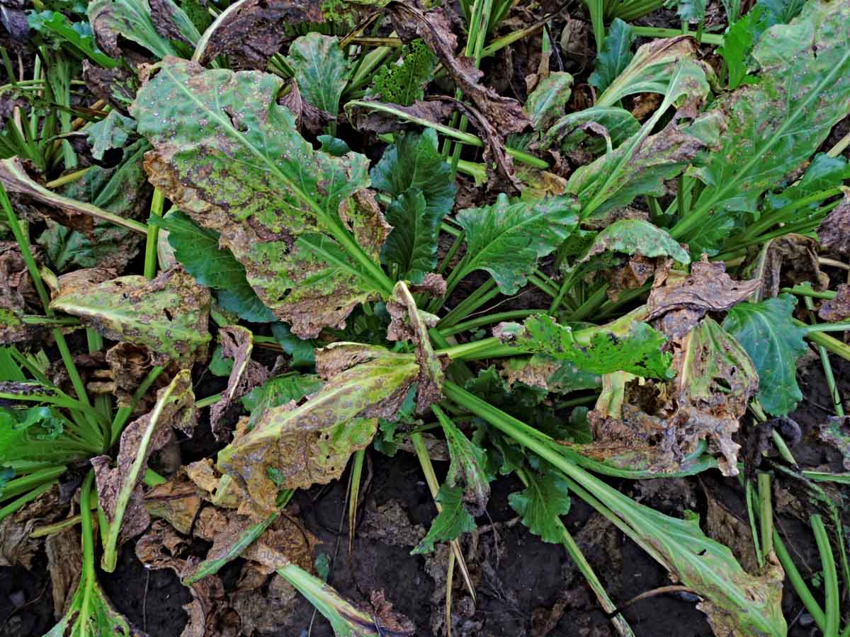 Pozor na cerkosporovou listovou skvrnitost řepy (skvrnatička řepná; Cercospora beticola), zvláště ve vlhčích, závětrných polohách, kde při silnějším napadení touto chorobou v rozhodující fázi nárůstu bulev a cukernatosti mohou zaschnout i celé listy a rostlina pak nouzově vytváří stále nové listy. Patogen se vyskytuje i na příbuzných merlíkovitých plevelech. Důležité je včas rozpoznat první příznaky choroby. První cerkosporové skvrny se objevují na starších listech, jsou kulaté, 2–3 mm v průměru s tmavším okrajem. Možno je zaměnit s hospodářsky méně významnými chorobami. V případě výskytu ramuláriové listové skvrnitosti řepy (větevnatka řepná) bývají skvrny větší a nemají tmavý okraj. U bakteriálních skvrnitostí jsou skvrny nepravidelného tvaru, odumřelé pletivo později vypadává a list je jakoby děrovaný po kroupách. Pro přesné určení prvních výskytů cerkosporové skvrnitosti listů řepy je vhodné laboratorní ověření daného vzorku. Počátek napadení lze u citlivých odrůd očekávat nejdříve za 5 týdnů po uzavření řádků. První prahová hodnota je míra napadení, kdy je na 5 listech ze 100 utržených z různých rostlin v porostu alespoň 1 skvrna (asi do 10. srpna). Tato hodnota odpovídá 5% napadení porostu, což je nejvyšší akceptovatelná míra napadení. Druhá prahová hodnota je potom 40–50 listů ze 100 odebraných zjištěná po 15. srpnu. Pokud jsou tyto hodnoty dosaženy je potřeba aplikovat fungicid. Na základě vyhodnocení modelů založených na sledování příznivých podmínek pro rozvoj patogenu (např. Cer99) je vydána signalizace, pokud se vyskytnou dva po sobě jdoucí příznivé dny. Pokud bylo provedeno první ošetření v polovině července, je vhodné v případě trvajícího ohrožení porostu (vlhko, teplo - optimální teplota pro vývoj je asi 20–27 °C) ošetření po 2 týdnech opakovat. V praxi se doporučuje provést ošetření za 5 až 8 dní po zjištění prvního výskytu, anebo do 4 dnů po větším dešti (srážky větší než 10 mm během 2 až 4 dnů), kdy jsou příznivé podmínky pro šíření choroby. Z přípravků lze aplikovat: Amistar Gold, Bagani, Dafne 250 EC, Eminent 125 ME, Mirador Xtra, Opus Top, Retengo Plus, Sfera 535 SC, Tango Super, Topsin M 500 SC, Yamato.