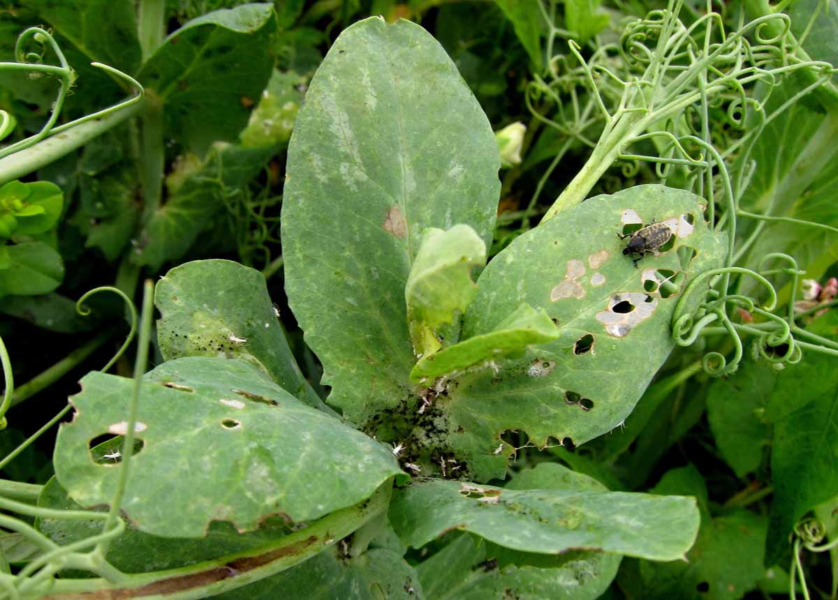 U vzcházejících luskovin, zejména za teplého a suchého počasí, kdy je zpomalen růst, sledujte poškození listů listopasy. Silně napadené porosty včas ošetřete některým pyretroidem: Fury 10 EW, Karate se Zeon technologií 5 CS, Karis 10 EC, Markate 50, Rafan Max, Scatto, aj. Za vlhkého počasí není potřeba ošetřovat.
