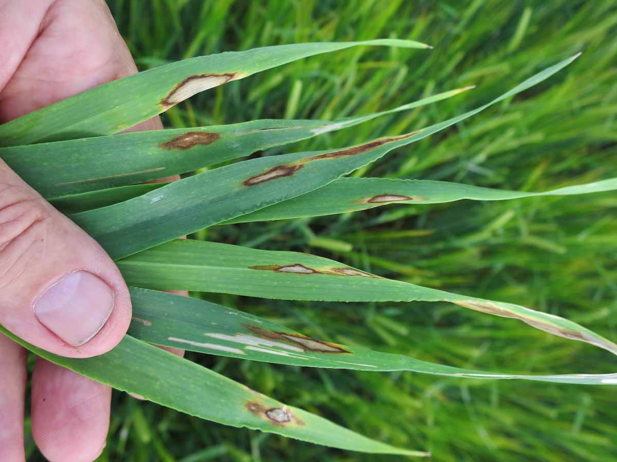 Spála ječmene (rynchosporiová skvrnitost; Rhynchosporium secalis) ve větší míře napadá porosty jarních ječmenů zejména za chladnějšího počasí s bohatými srážkami. Infekce se šíří sporami v rozstřikujících se dešťových kapkách, padajících z listu na list.