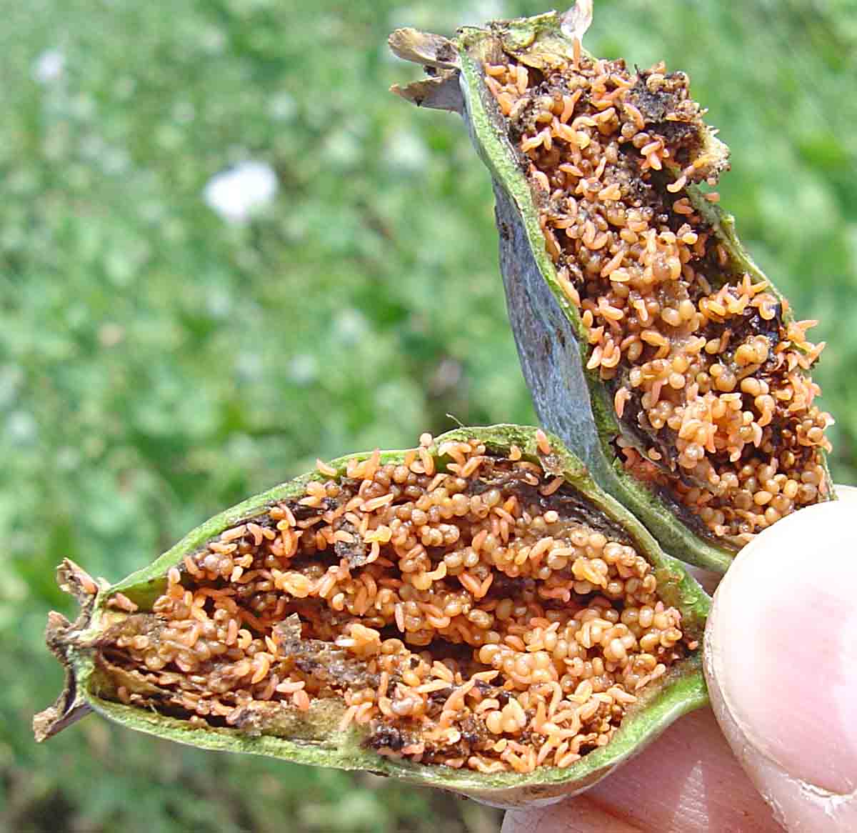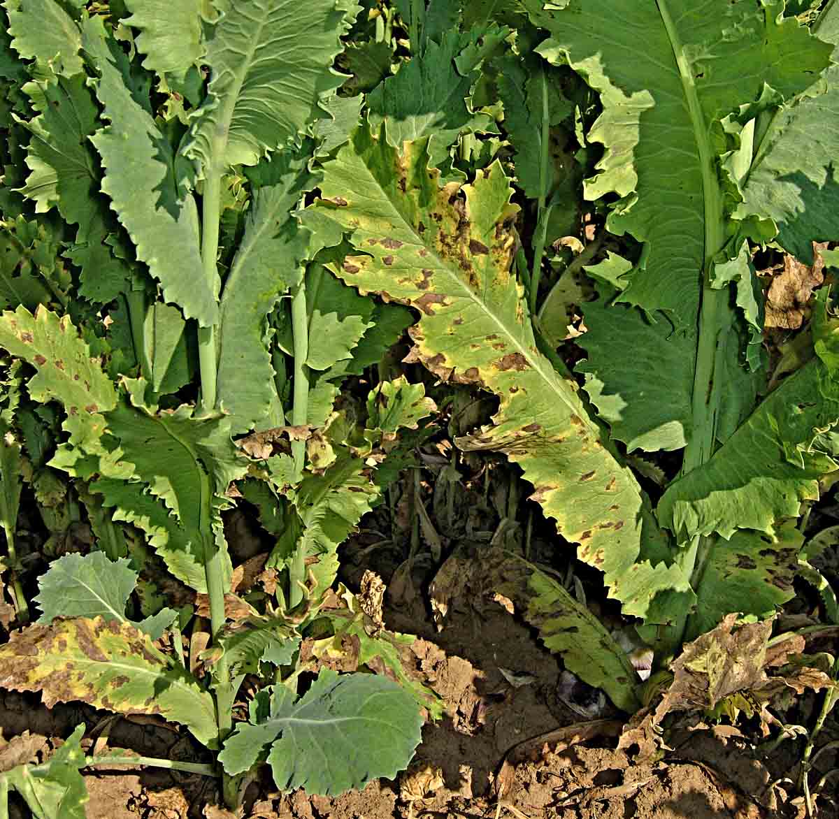 V oblastech, kde se s nárůstem osetých ploch rozšířila škodlivost houbových chorob, sledujte napadení porostů pleosporovou - helminthosporiovou nekrózou máku a plísní máku.