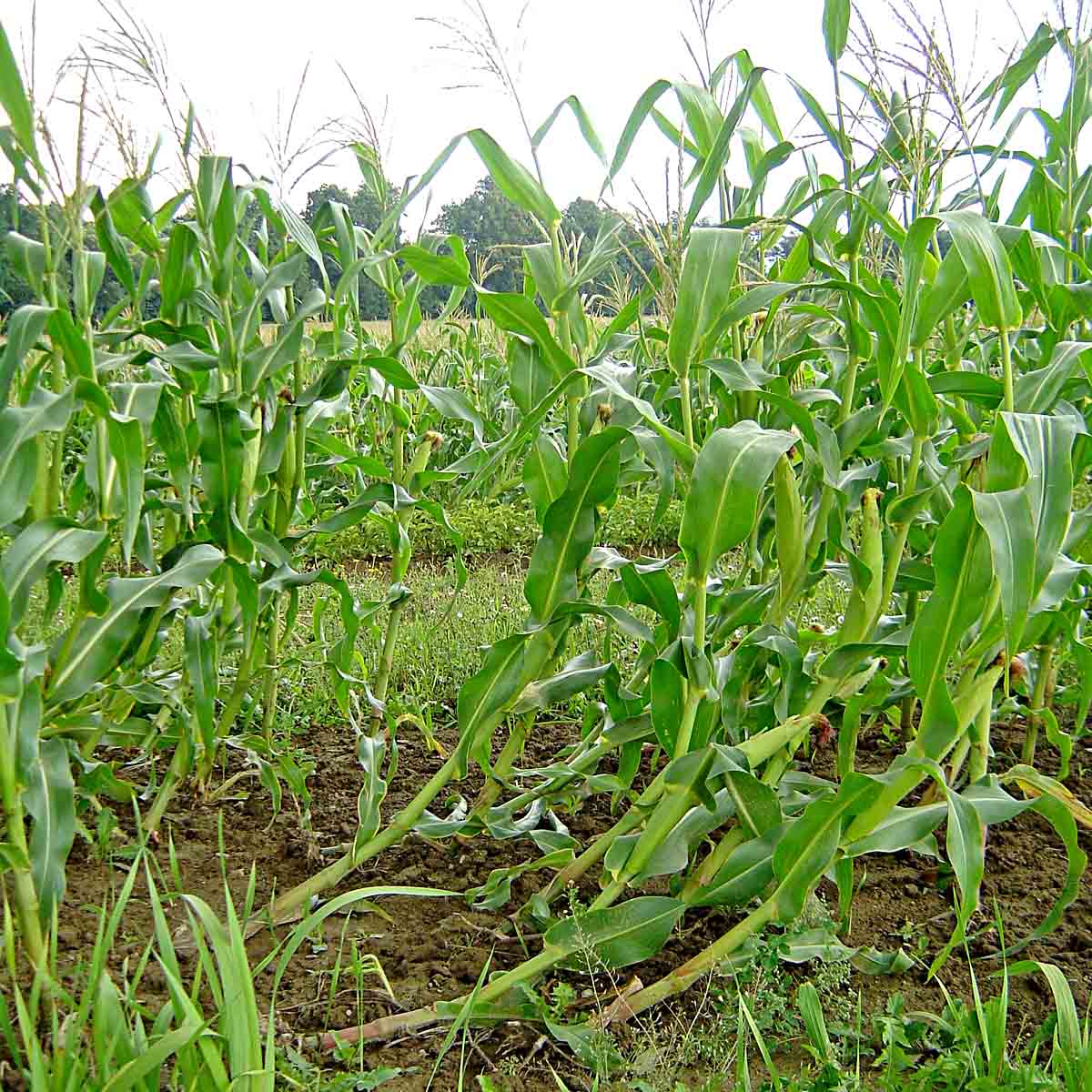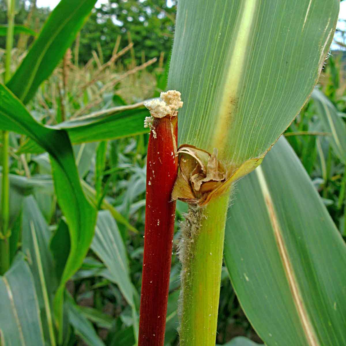 Kukuřice poškozená larvami bázlivce - husí krky