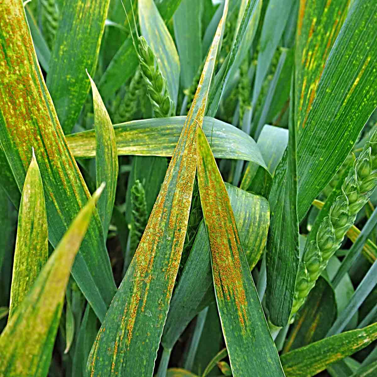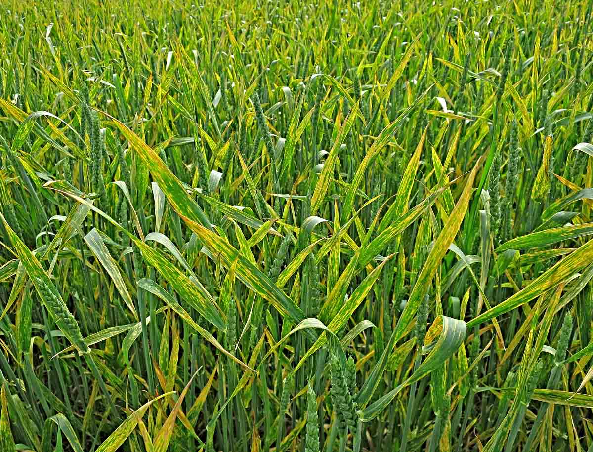 Rez plevová - žlutá rzivost pšenice v porostu