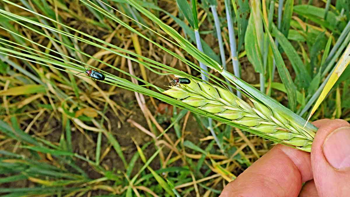 Za teplého počasí mohou na jarním ječmeni ohniskově škodit i kohoutci, vrtalka ječná a mšice.