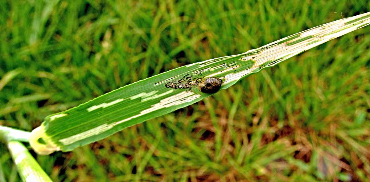 Poškození lat ovsa třásněnkami