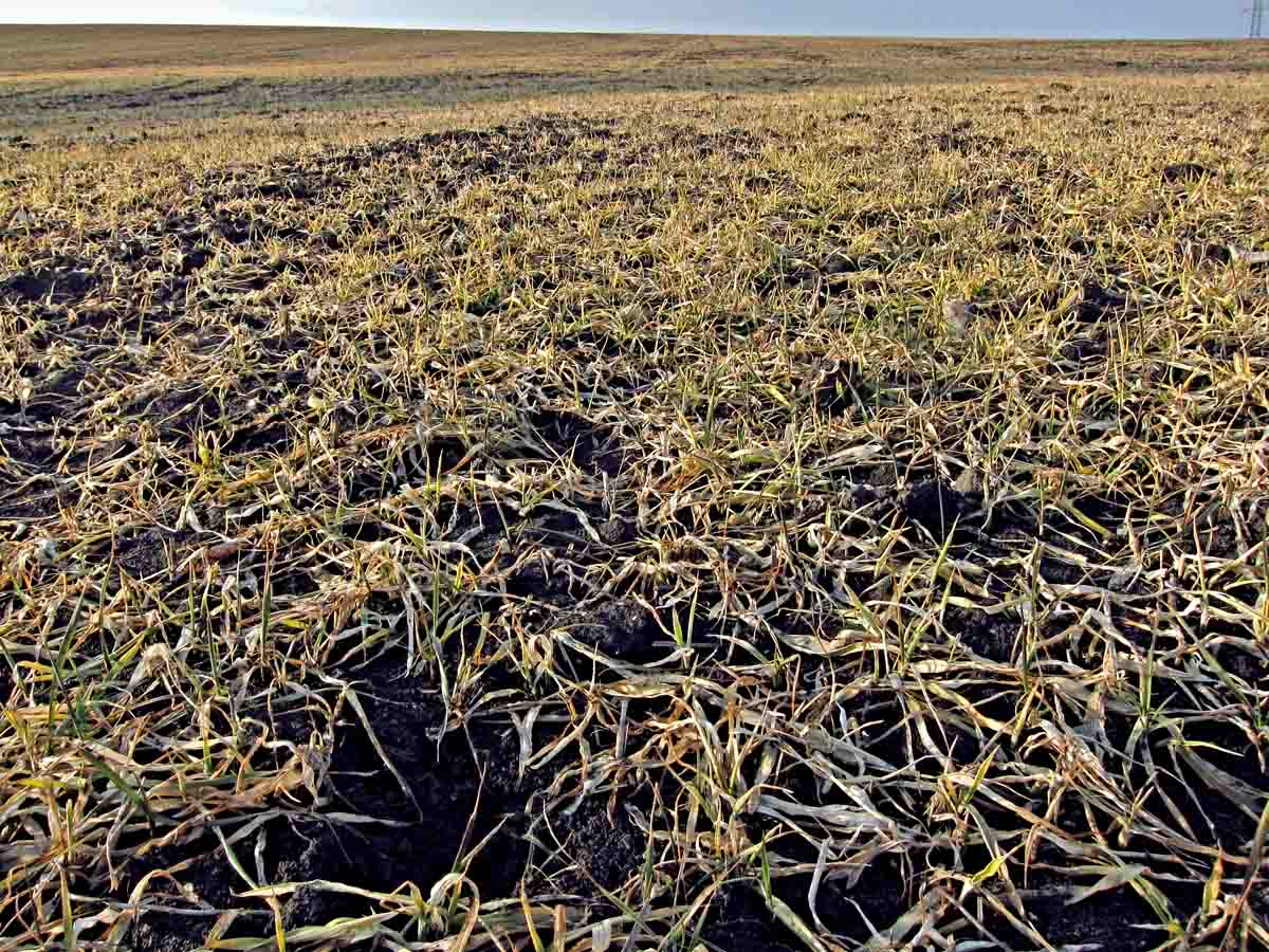 Porost pšenice poškozený mrazy