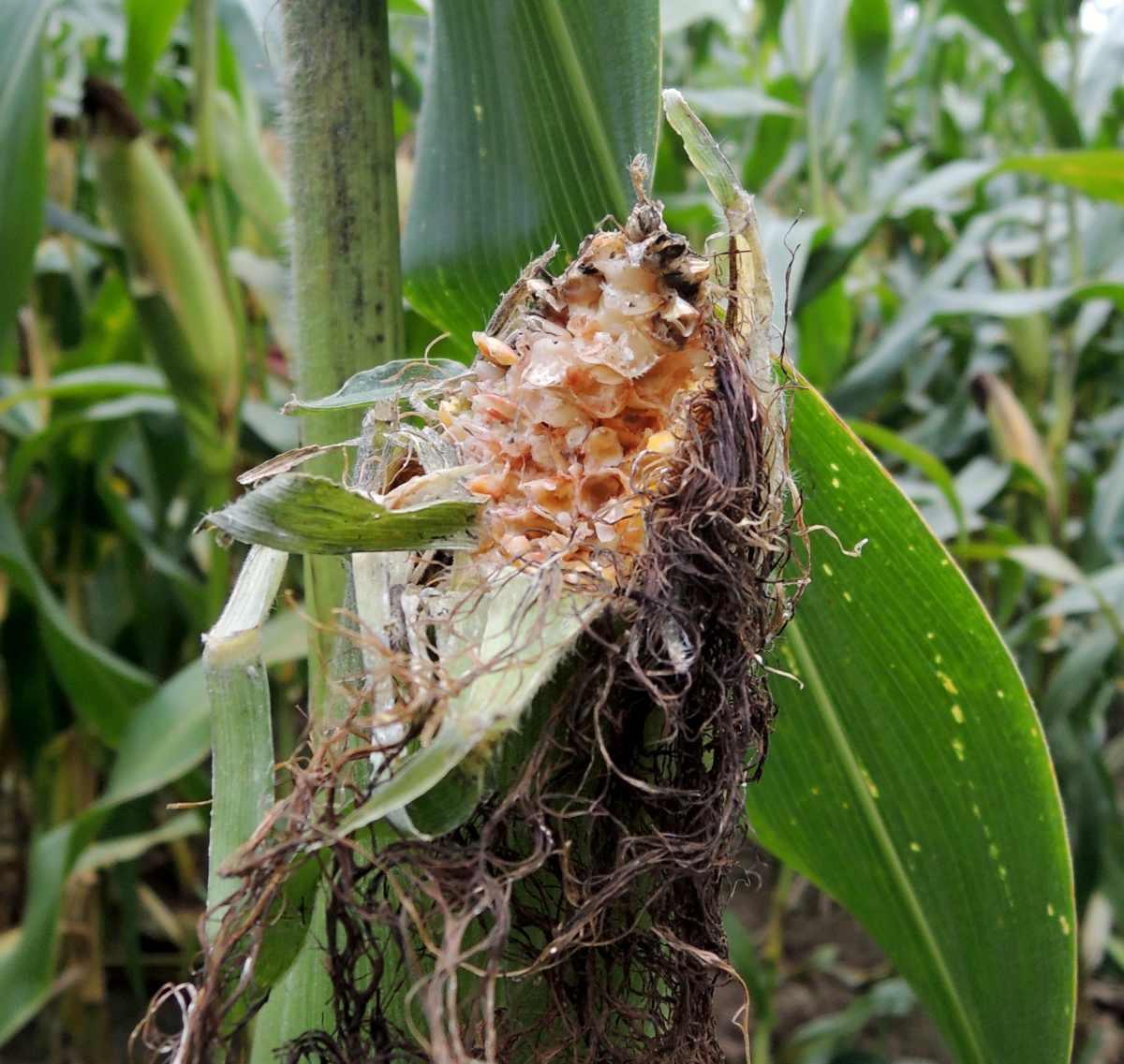 08 Poškození palice kukuřice ptáky
