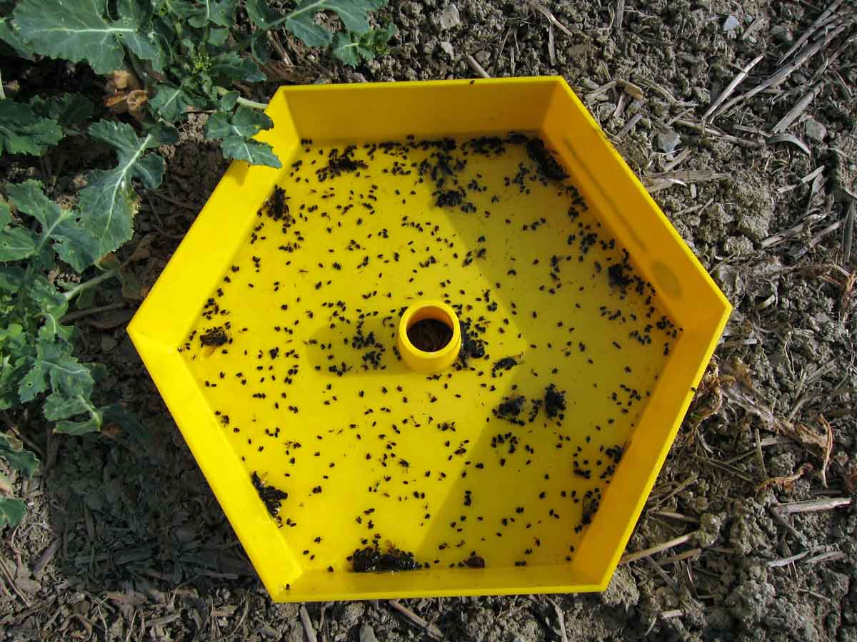 Žlutá miska v porostu řepky - krytonosec řepkový