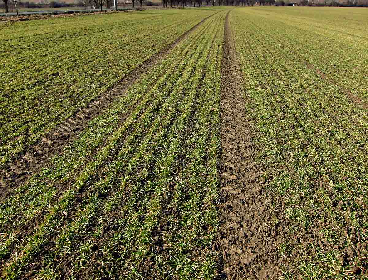 Porost pšenice po sejití sněhu