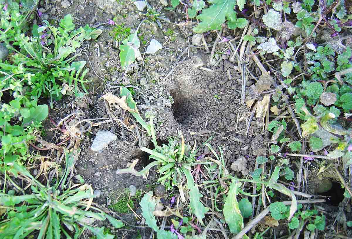 Aktivní nora hraboše polního na podzim