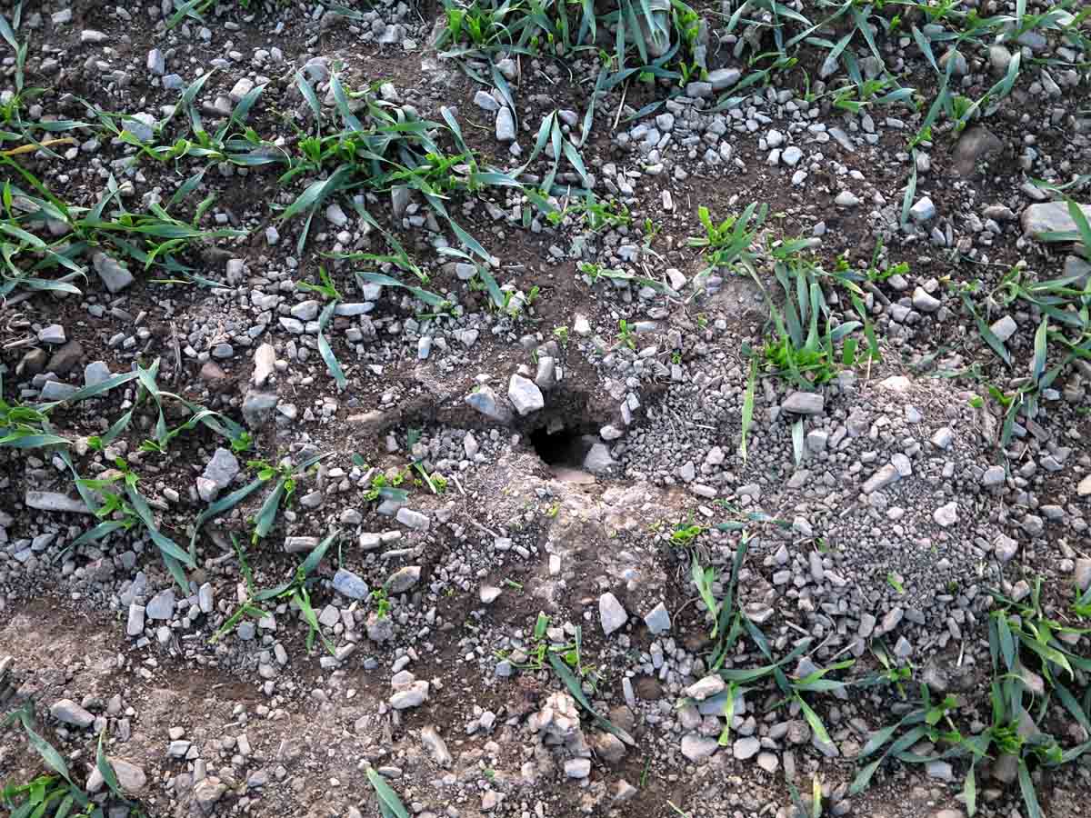 Populační hustotu hraboše polního sledujeme podle počtu užívaných nor na ha kdykoliv, když potřebujeme ohodnotit početnost výskytu. Podle metodických pokynů ÚKZÚZ provádíme kontrolu početnosti hraboše polního tak, že na pozemku uskutečníme 4 průchody o šířce 2,5 m a délce 100 m. Při průchodu sčítáme nory hraboše polního se zřetelnými výhrabky zeminy, užívané nory s trusem hlodavců u nory nebo na cestičce, s čerstvou potravou v ústí nory, okousanou vegetací kolem nory apod. Počet užívaných nor ze 4 průchodů násobíme 10, a tím obdržíme počet užívaných nor na ha.
