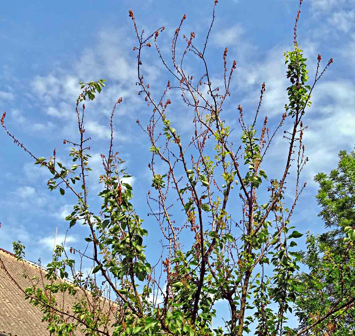 - 5 kalichů květů s vajíčky, jizva po napadení pilatek při slabé až střední násadě květů nebo