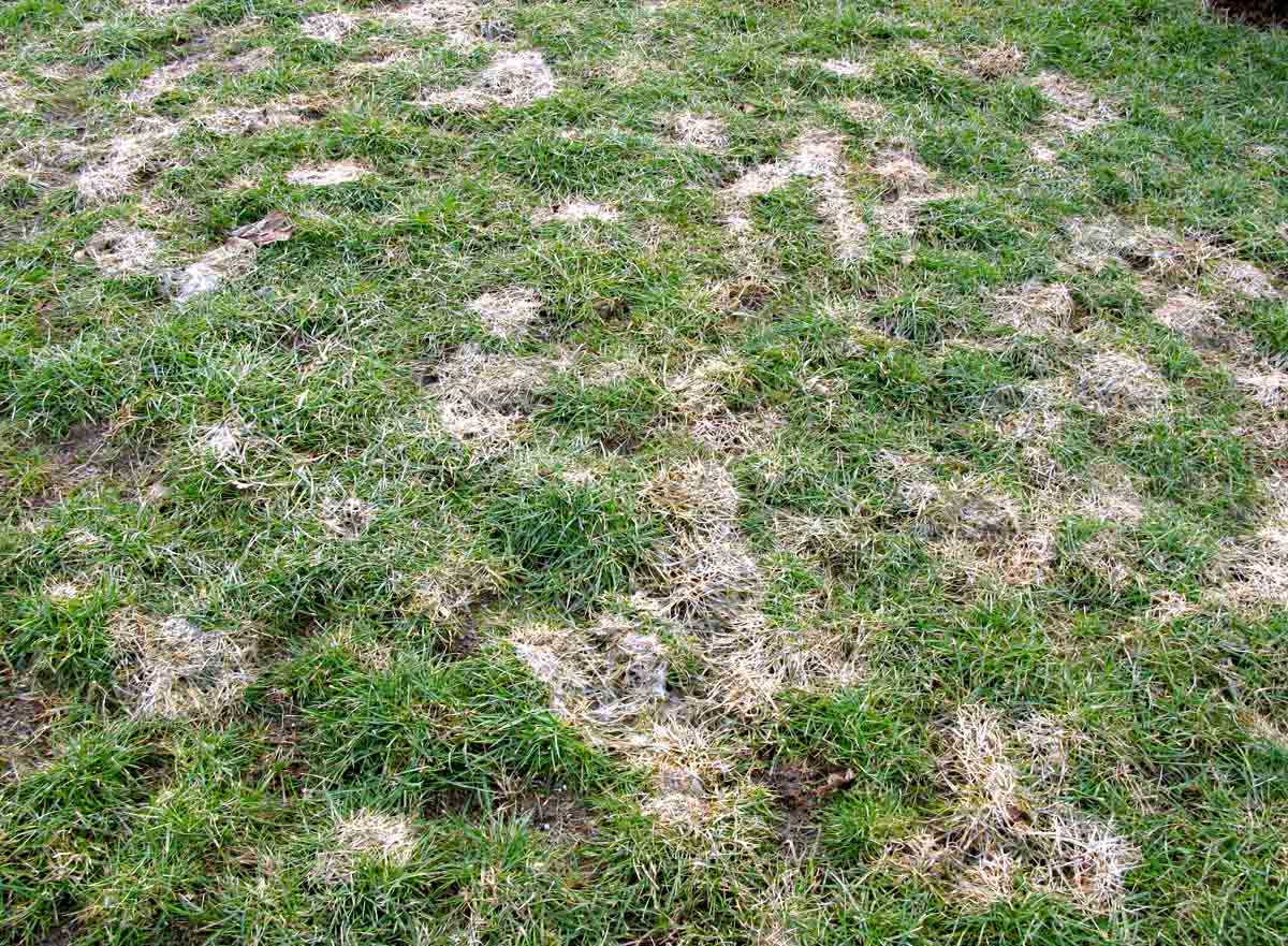 Jedná se o chorobu, která ohrožuje porosty během zimy i v časném jaru a může podstatně přispět k jejich vyzimování. Původcem této choroby je fytopatogenní houba Monographella nivalis, která napadá obilniny a trvalé travní porosty. Po sejití sněhu na jaře se mohou (na citlivých druzích trav - jílek vytrvalý, psinečky, lipnici roční aj.) objevovat bílošedé až narůžovělé skvrny, povlaky, které působením slunce většinou zmizí bez většího poškození trávníku. Této chorobě se daří při vyšší vlhkosti, napadne-li sníh na nezmrzlou půdu, přehnojením dusíkem, větším množství zelené hmoty (neposečený trávník), ale i stařiny, vyšším pH a na zamokřeném pozemku.