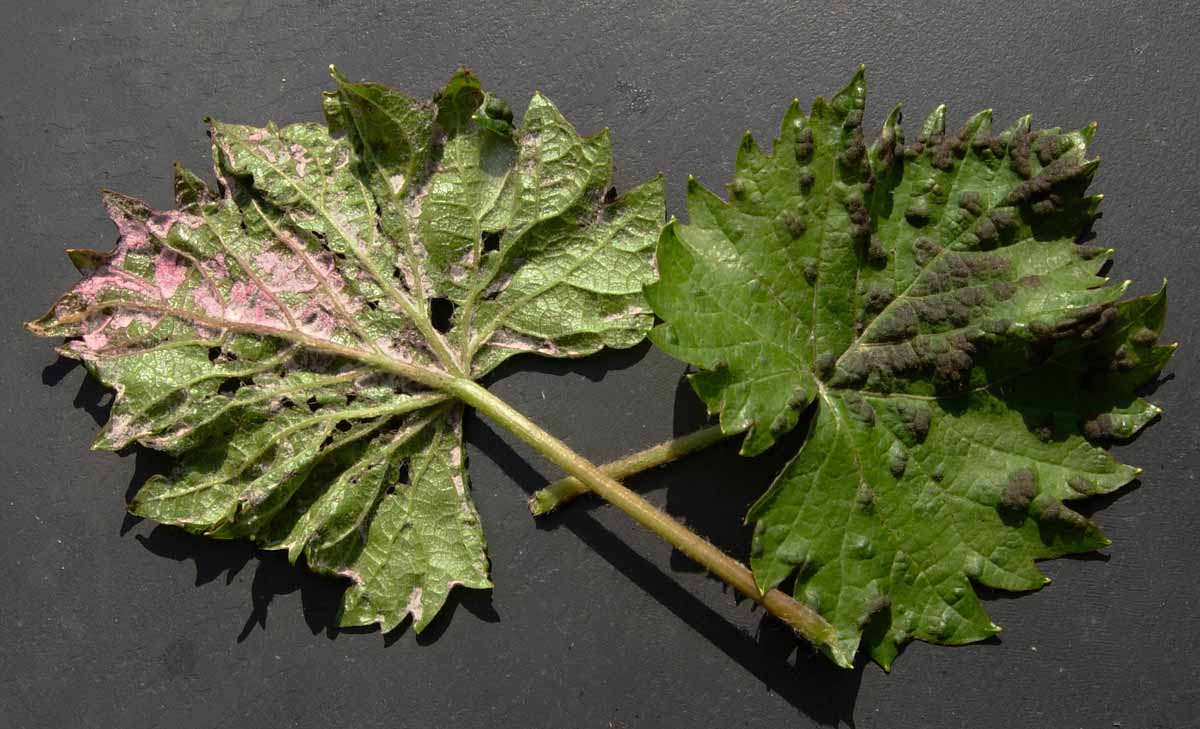 Vlnovník révový - plstnatost (vlevo) a hálčivec révový - kadeřavost (vpravo)