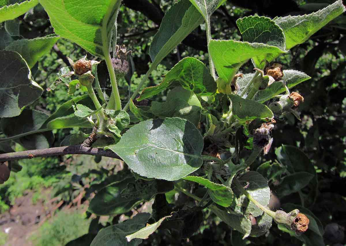Za deštivého počasí, zvláště v době kvetení a po odkvětu, se může projevit silný nárůst chorob - strupovitosti jabloně (Venturia inaequalis), strupovitosti hrušně (V. pyrina) i padlí jabloně (Podosphaera leucotricha), proti kterým můžeme i preventivně aplikovat fungicidy: proti padlí jabloně: Discus, Kumulus WG, Luna Experience, Sulfolac 80 WG, Sulfurus, Talent, Tercel, Thiovit Jet, Topas 100 EC, Zato 50 WG aj; a proti strupovitosti: Batalion 450 SC, Captan 50 WP, Delan Pro, Dithane DG Neotec, Domark 10 EC, Faban, Chorus 75 WG, Luna Experience, Merpan 80 WG, Minos, Mytos 30 SC, Polyram WG, Pyrus 400 SC, Score 250 EC, Sercadis, Talent, Tercel aj.