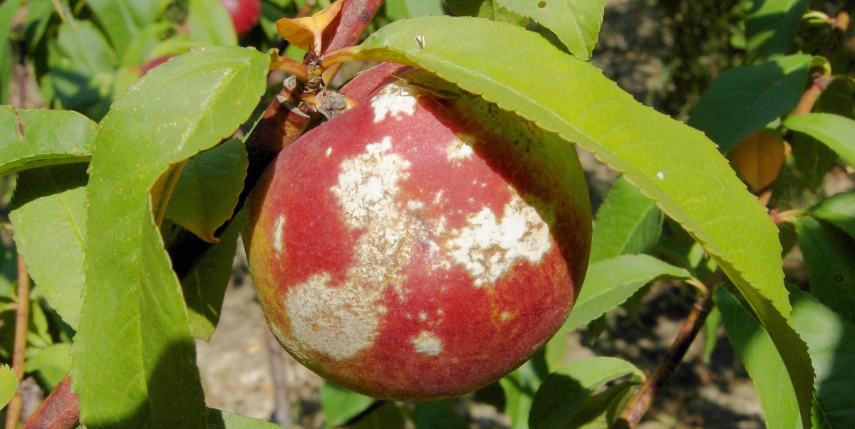 Při deštivém období se zvyšuje riziko poškození dozrávajících plodů peckovin moniliniovou hnilobou. Původcem choroby je vřeckatá houba Monilinia laxa a někdy i její úzce příbuzná Monilinia fructigena. Houby lze od sebe rozlišit i makroskopicky: M. fructigena mívá konidiofory s konidiemi uspořádány spíše v soustředných kruzích a napadá častěji jádrové ovoce, zatímco M. laxa je patogenem peckovin a kupky konidií pokrývají roztroušeně celý plod. U peckovin jsou k chemické ochraně povoleny přípravky: Prolectus -ochranná lhůta (OL) 1 den; Lynx, Signum, Zato 50 WG - OL 7 dnů; Talent - OL 14 dnů a u broskvoní také Luna Experience - OL 7 dnů a Teldor 500 SC - OL 3 dny. Opatření jsou u peckovin i jádrovin obdobná. Především je třeba preventivně odstraňovat napadené plody a větévky (u peckovin), zabránit poranění plodů (efektivní je ochrana proti škůdcům) a v rizikových lokalitách omezit pěstování náchylných odrůd. U jádrovin lze moniliniovou hnilobu (a také sazovitost, mušincovitost a některé skládkové choroby) omezit, pokud provedeme pozdní ošetření před sklizní přípravkem Geoxe 50 WG - OL 3 dny, Bellis - OL 7 dnů, Flint Plus, Luna Experience - OL 14 dnů nebo pozdní ošetření proti strupovitosti některým z přípravků s kratší ochrannou lhůtou: Talent, Zato 50 WG - OL 14 dnů aj. Termín ošetření se řídí podle délky ochranné lhůty použitého fungicidu. Zdravotní stav plodů a skladovatelnost zlepšuje i přidání listových vápenatých hnojiv do postřiku. Pozor na ochrannou lhůtu u raných odrůd.