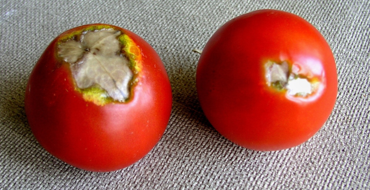 Příznaky deficience vápníku na rajčeti