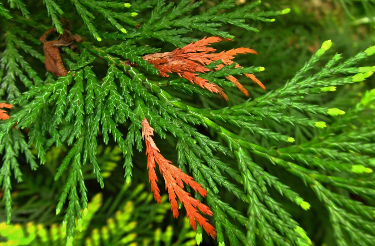 Hnědnutí a odumírání jehlic a větví tújí