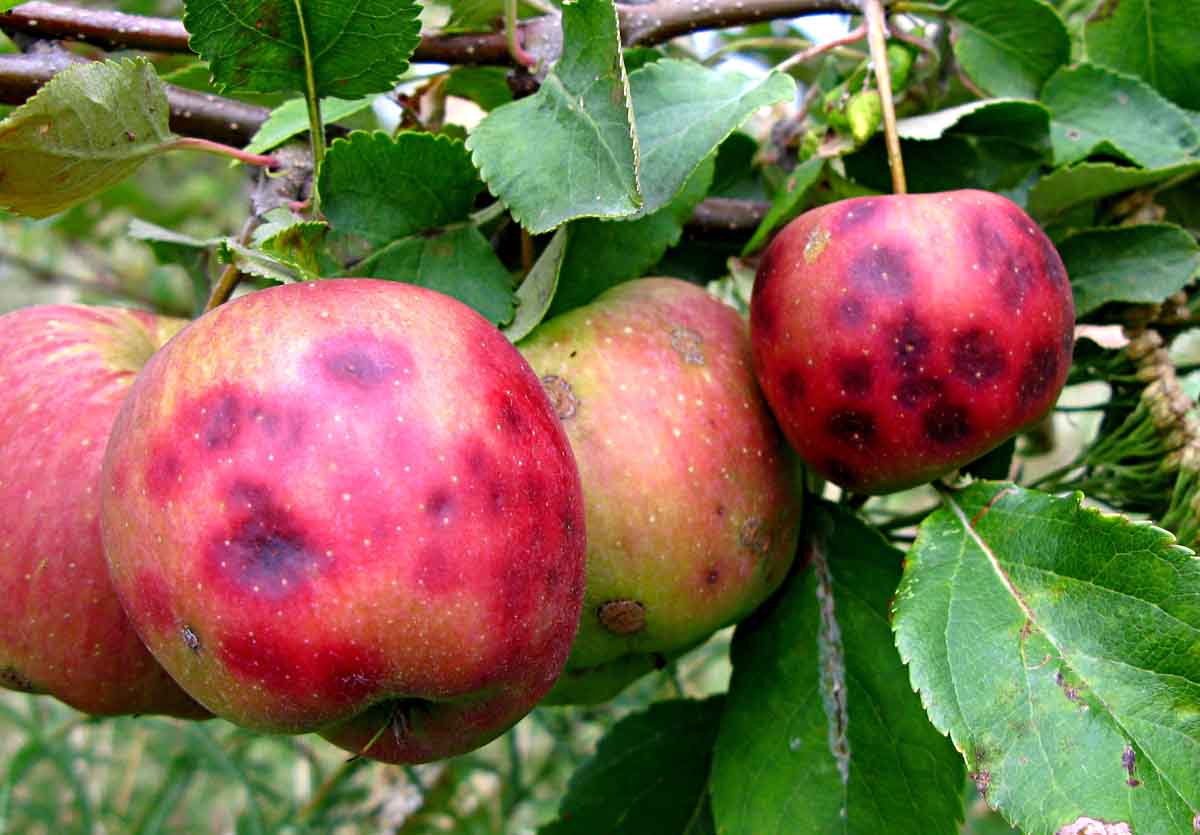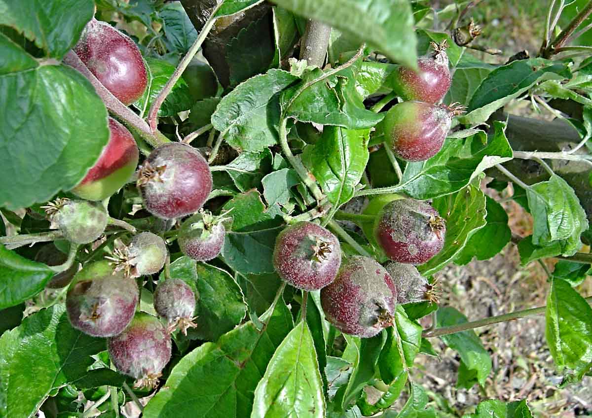Strupovitost jabloně na malých plodech