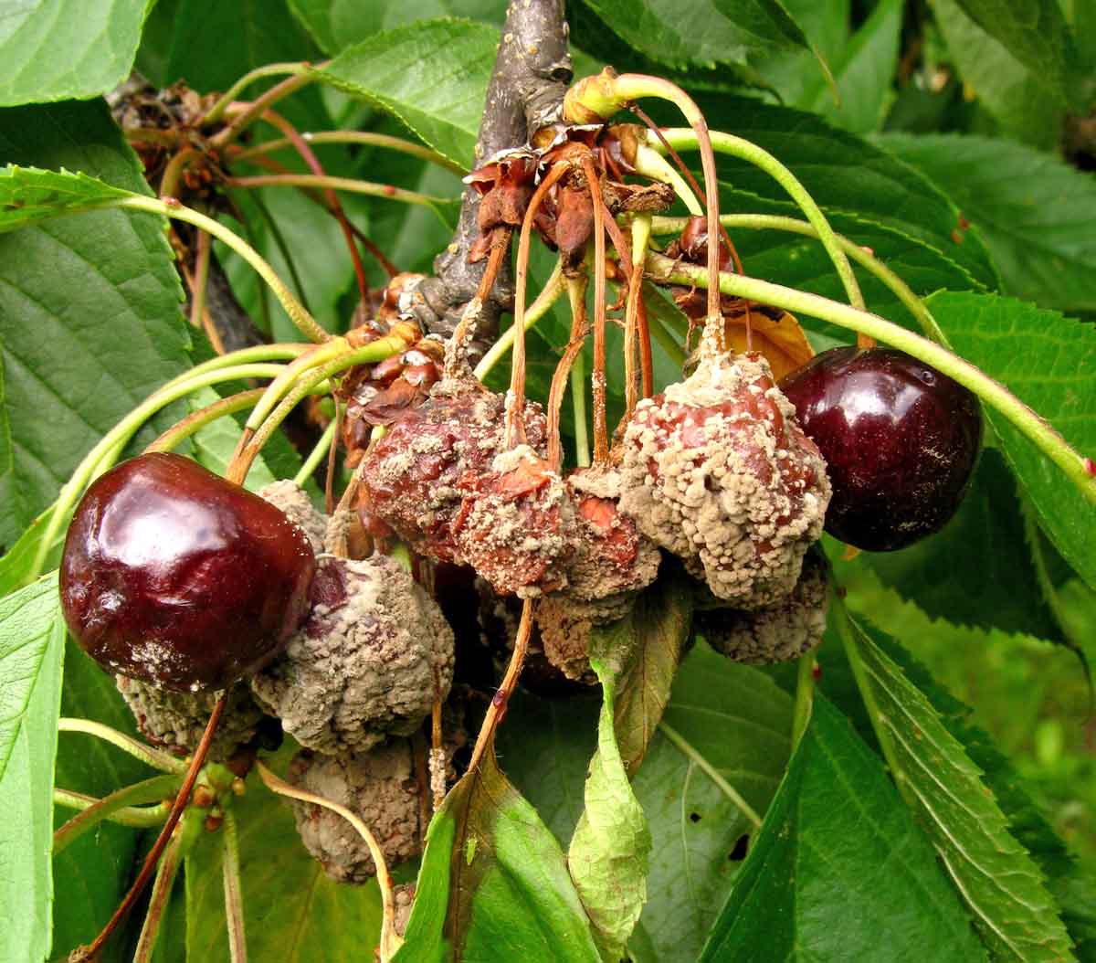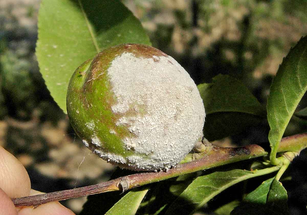 Při deštivém období se zvyšuje riziko poškození dozrávajících plodů peckovin moniliniovou hnilobou. Původcem choroby je vřeckatá houba Monilinia laxa a někdy i její úzce příbuzná Monilinia fructigena. Houby lze od sebe rozlišit i makroskopicky - M. fructigena mívá konidiofory s konidiemi uspořádány spíše v soustředných kruzích a napadá častěji jádrové ovoce, zatímco M. laxa je patogenem peckovin a kupky konidií pokrývají roztroušeně celý plod. U peckovin jsou k ochraně přípravky: Prolectus - ochranná lhůta (OL) 1 den; Moon Privilege, Teldor 500 SC - OL 3 dny, Signum, Zato 50 WG - OL 7 dnů; Talent - OL 14 dnů, u broskvoní také Luna Experience - OL 7 dnů a u slivoní Abilis Ultra, Lynx - OL 7 dnů. Opatření jsou u peckovin i jádrovin obdobná. Především je třeba preventivně odstraňovat napadené plody a větévky (u peckovin), zabránit poranění plodů (efektivní je ochrana proti škůdcům) a na rizikových lokalitách omezit pěstování náchylných odrůd.