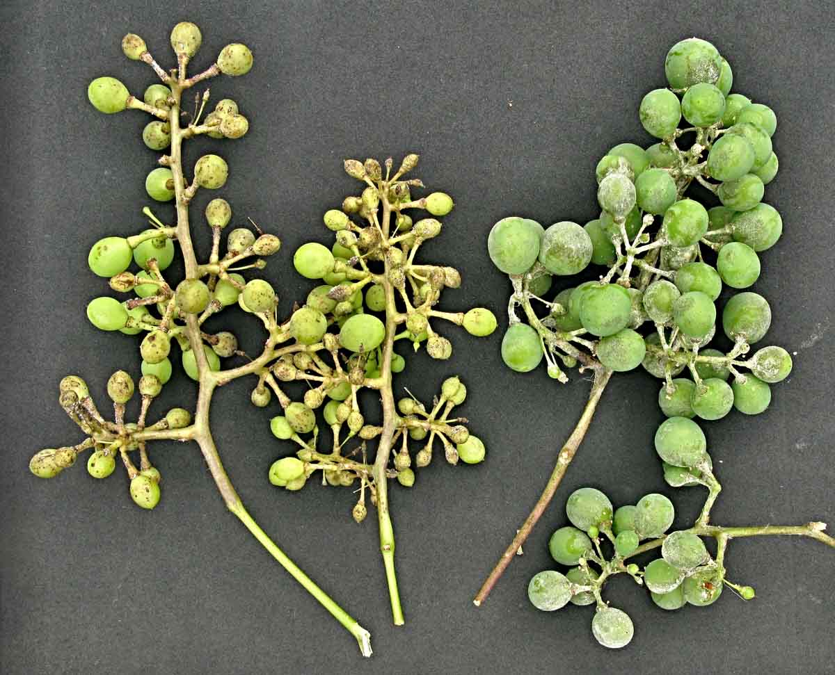 Plíseň révy (vlevo) a padlí révy (vpravo) na hroznu