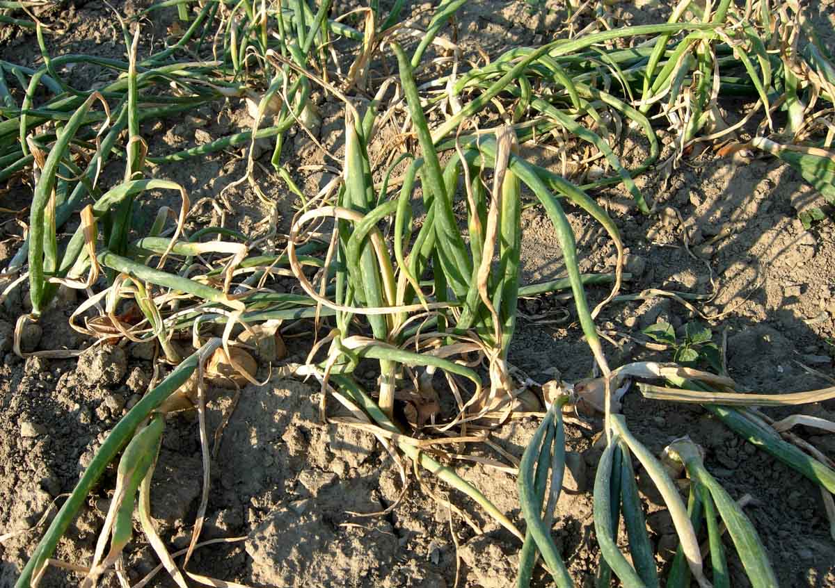 Sledujte signalizaci prvních výskytů plísně česnekovitých (plíseň cibule; Peronospora destructor). Výskyt choroby podporuje teplejší počasí a počasí se střídavými teplotami mezi 5 až 23 °C, vysoká vzdušná vlhkost, rosy a dešťové srážky. Ošetřujeme v 7 až 14denních intervalech podle průběhu počasí a průběhu epidemie přípravky: Acrobat MZ WG, Dithane DG Neotec, Mastana SC, Novozir MN 80 NEW, Ortiva, Ridomil Gold MZ Pepite, Zakeo, případně i měďnatými přípravky: Flowbrix, Funguran-OH 50 WP, Champion 50 WP, Kuprikol 50. Pro zvýšení účinnosti se doporučuje přidat do postřikové jíchy smáčedlo. V případě silného infekčního tlaku (při deštivém počasí) lze interval ošetření zkrátit. Podle metodiky možno preventivně aplikovat i registrovaný biopreparát Polyversum.