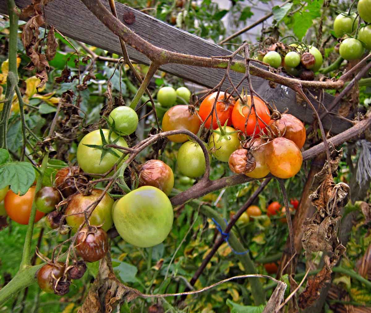 Sledujte signalizaci na první výskyty plísně rajčete (plíseň bramborová; Phytophthora infestans). Zvláště porosty rajčat pěstované v uzavřených polohách, je nutno dle potřeby i opakovaně preventivně ošetřit některým z přípravků: Acrobat MZ WG, Banco 500SC, Dithane DG Neotec, Dithane M 45, Infinito, Nautile DG, Novozir MN 80 New, Ortiva, Previcur Energy, Ridomil Gold MZ Pepite, Zekeo aj. Při ošetření platí obdobné zásady jako při ošetřování brambor. Nejdůležitější je včasná preventivní ochrana. Při slabším napadení se doporučuje i mechanické odstraňování již napadených listů a plodů, aby se z porostu odstranily zdroje infekce, při silném napadení je vhodné odstranit i celé napadené rostliny. Ohroženy mohou být zejména porosty s pravidelnou zálivkou a dále porosty na lokalitách, kde byly zaznamenány silné bouřkové srážky. Měďnaté přípravky:Flowbrix, Funguran-OH 50 WP, Champion 50 WP, Kocide 2000, Kuprikol 50 aj. mohou prodloužit vegetační dobu.