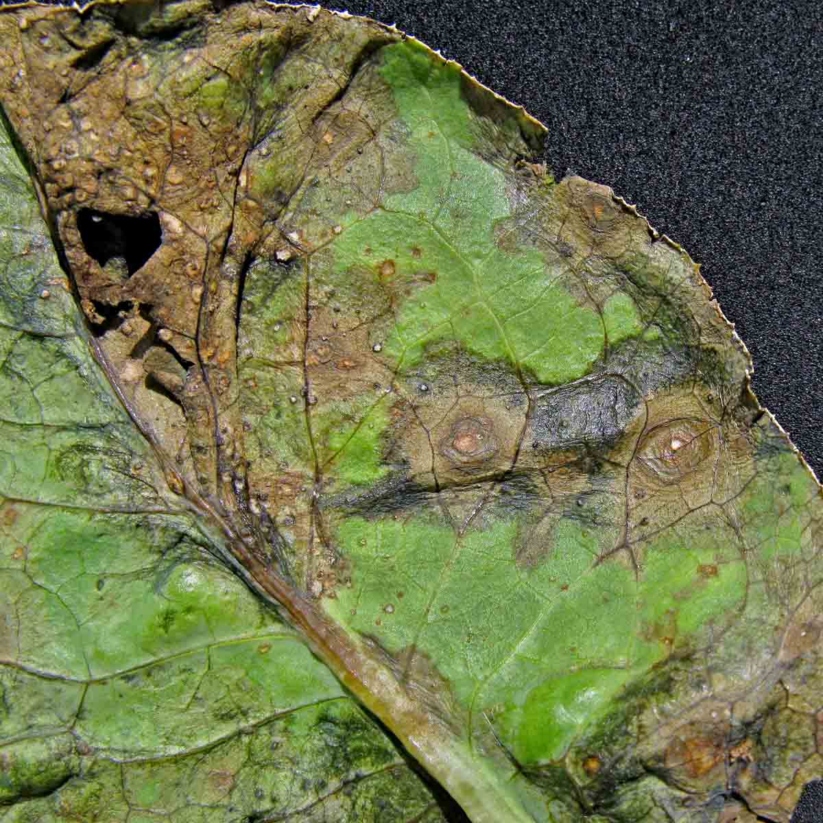 Alternáriová skvrnitost brukvovitých - detail listu