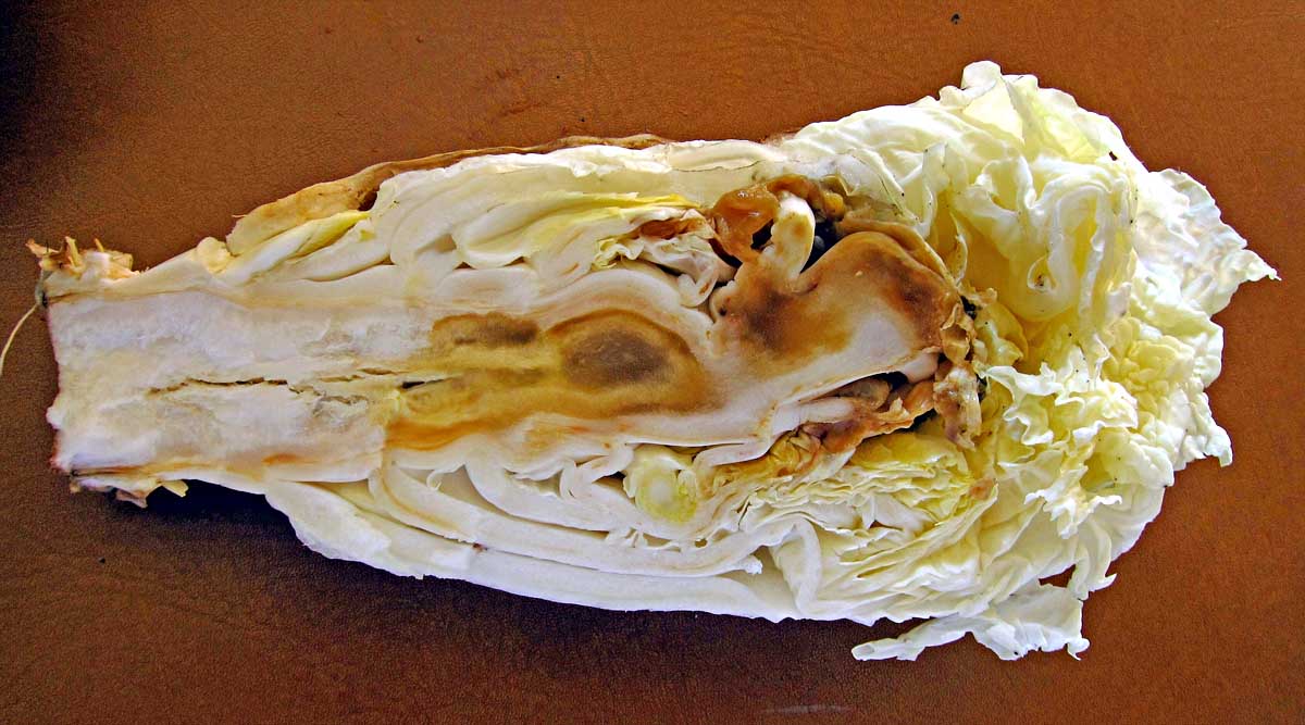 Nekrózy vnitřních listů hlávek zelí