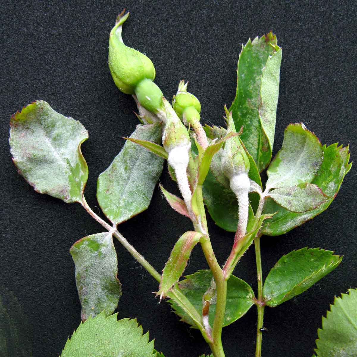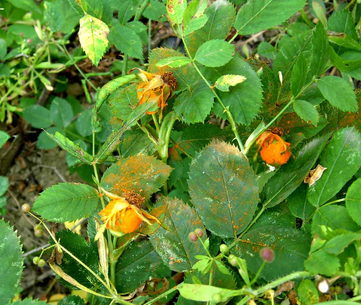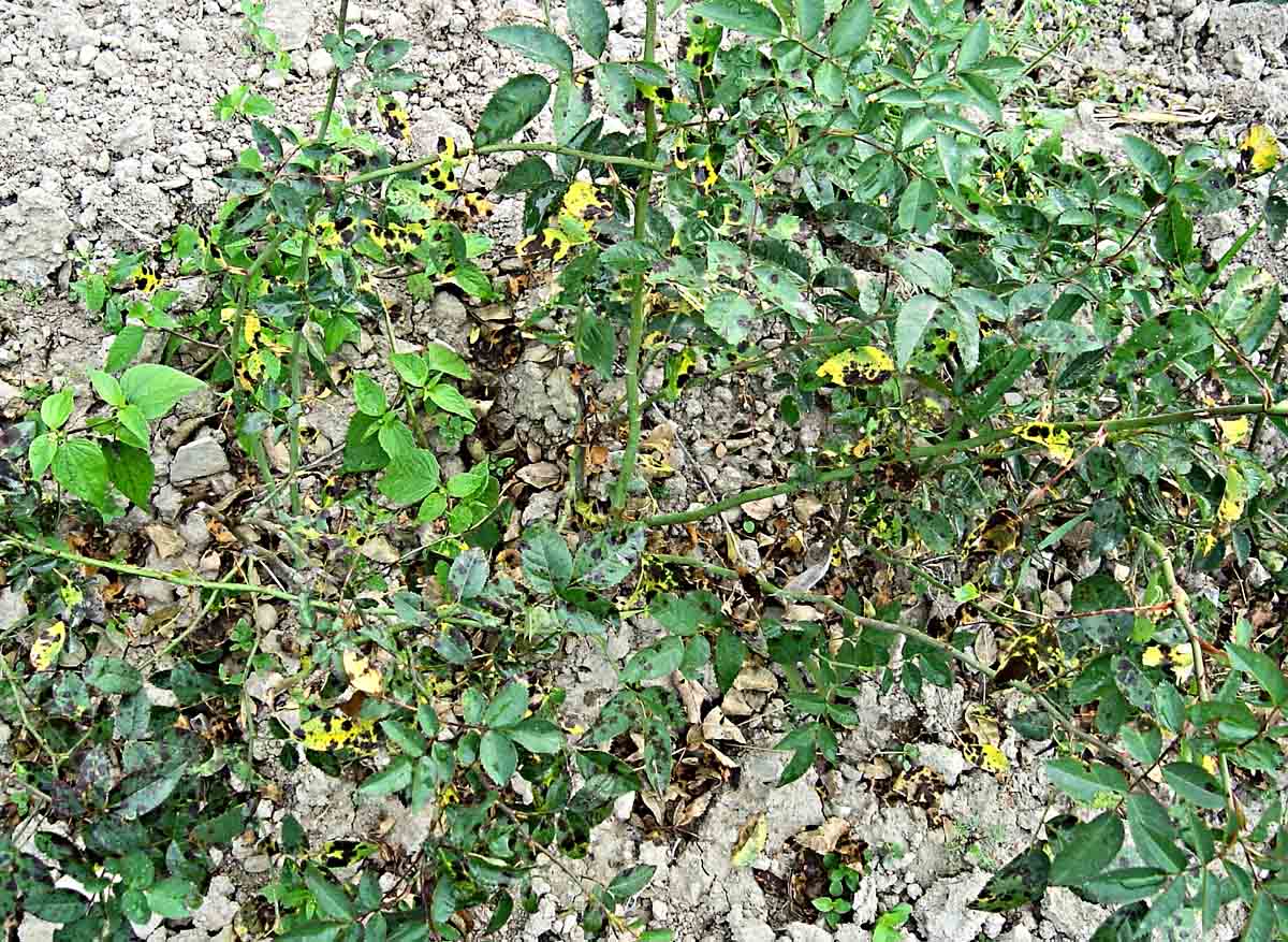 Na růžích může na listech škodit kromě mšic i houbová choroba černá skvrnitost růží (Diplocarpon rosae, anam. Marssonina rosae) a místy rovněž padlí (Podosphaera pannosa) a rez růžová (Phragmidium mucronatum a P. tuberculatum). Podle potřeby je včas ošetřete např. přípravkem: Collis, Folicur AL, Horizon 250 EW, Ortiva, Saprol - Proti houbovým chorobám růží, Score 250 EC aj.