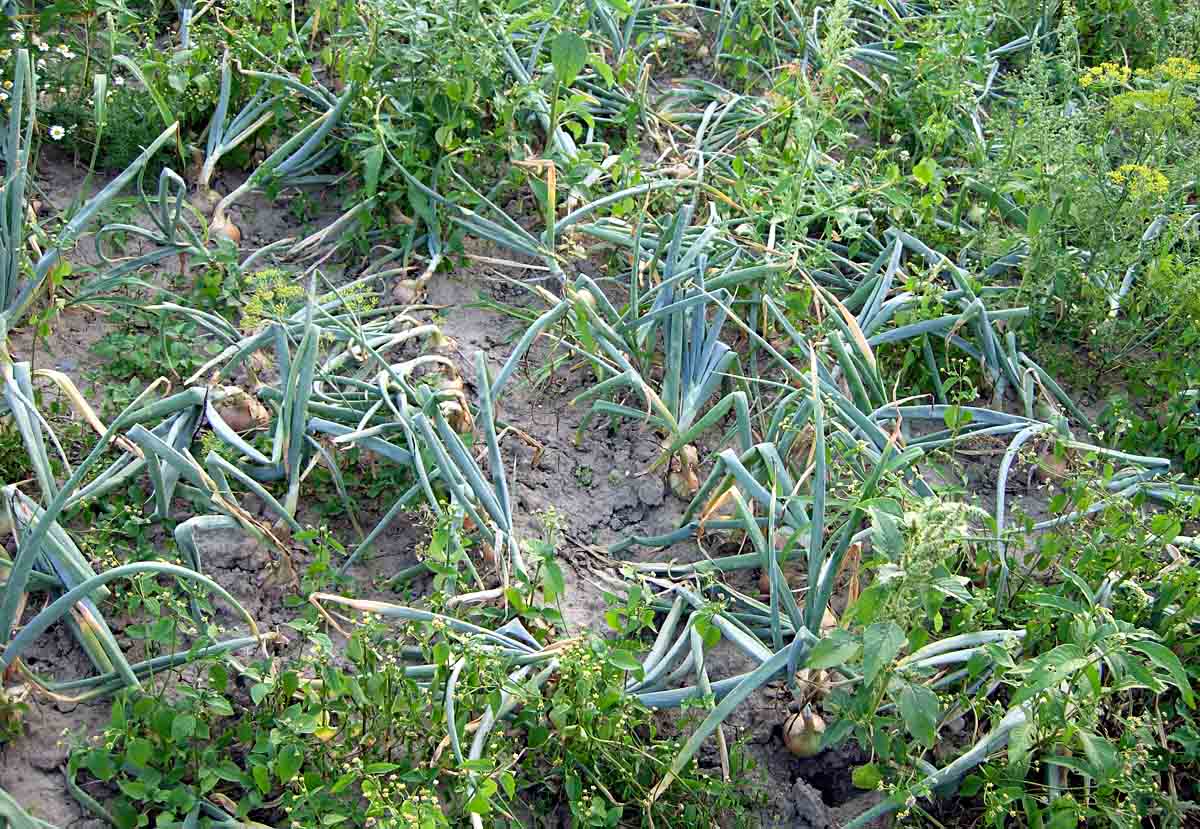 Nejčastější skládková choroba cibule kuchyňské - krčková hniloba česnekovitých (Botrytis alli) je do značné míry ovlivňována i termínem a způsobem sklizně. Cibule na uskladnění by se nikdy neměla sklízet později než v době, kdy asi dvě třetiny rostlin již mají polehlou („zalomenou“), ale stále ještě zelenou nať. Ta by se měla odstranit z cibule až po důkladném zaschnutí natě. Cibule pěstovaná ze semene (z přímých výsevů) je krčkovou hnilobou napadána mnohem méně než cibule vypěstovaná ze sazečky. Rovněž preventivní aplikace přípravku Switch snižuje napadení touto chorobou.