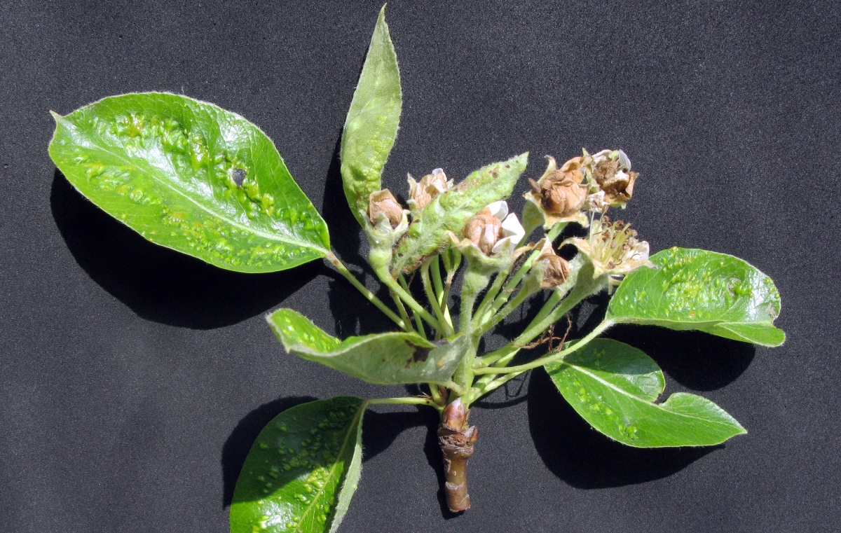 Poškození listů vlnovníkem hrušňovým