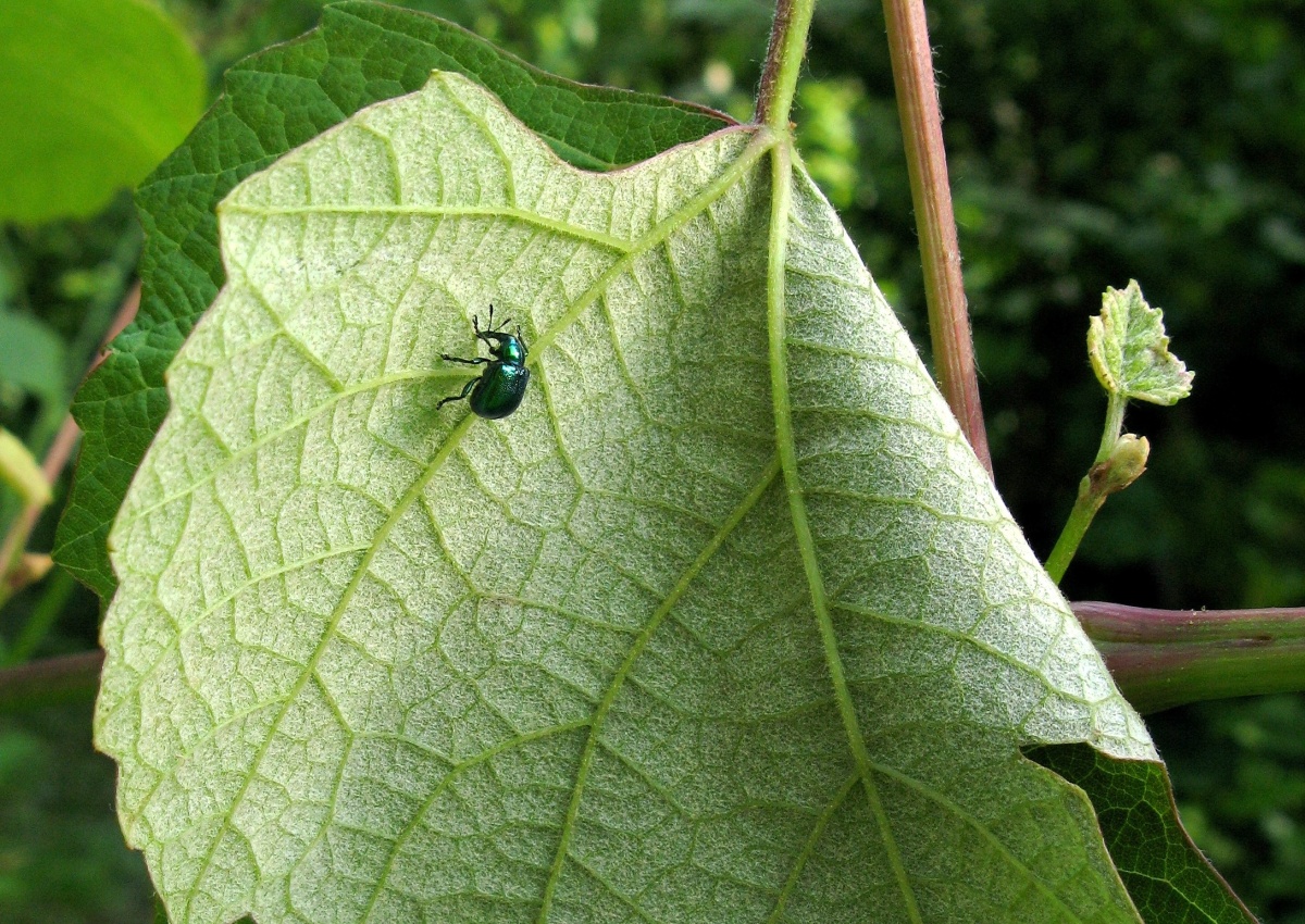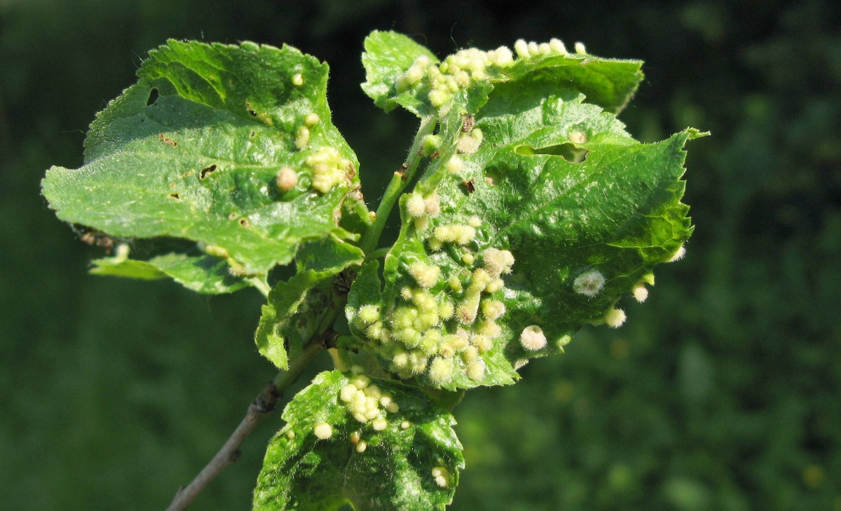 Poškození listů révy hálčivcem révovým